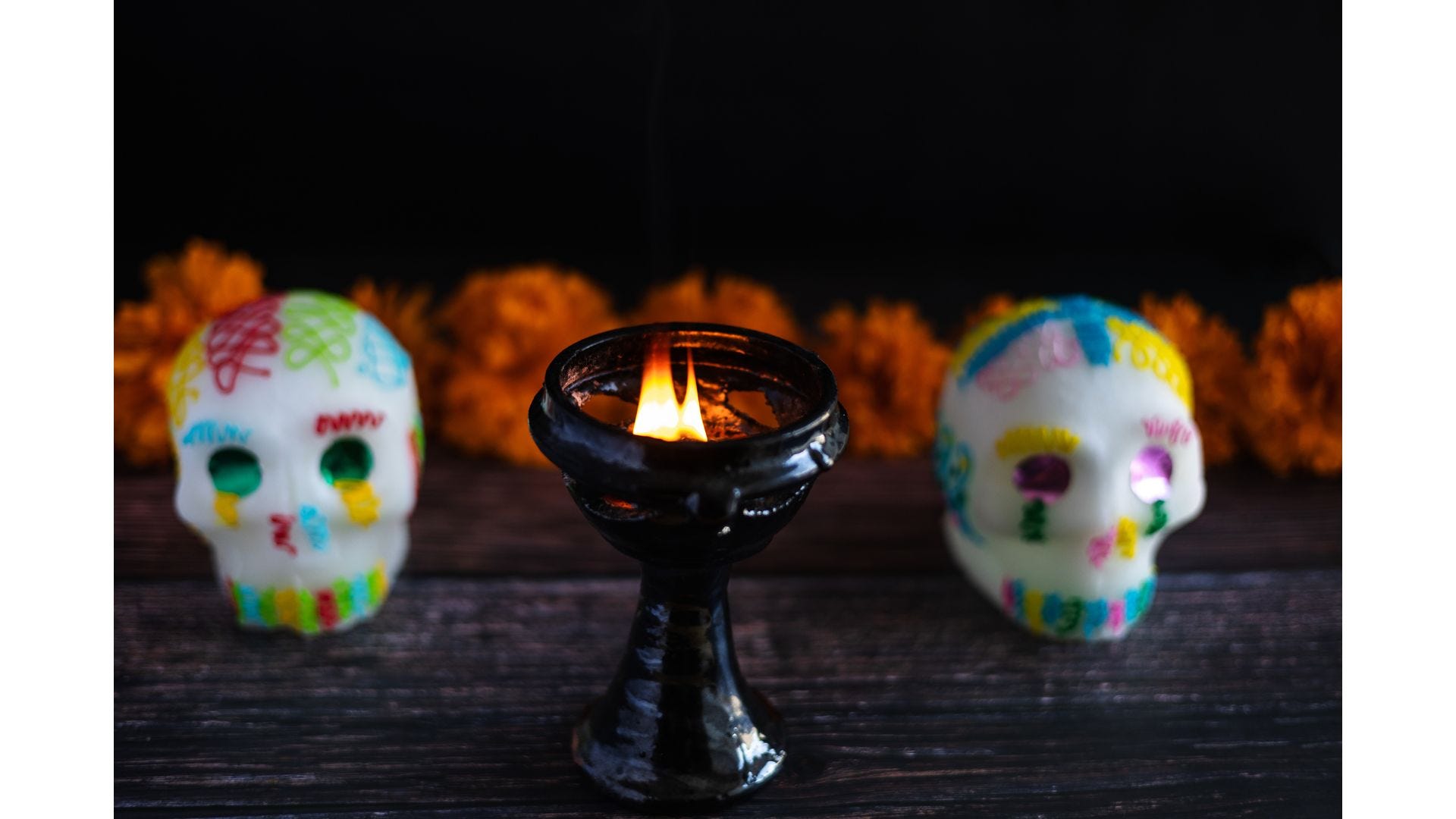 While I didn’t grow up with this tradition, I love the idea. It’s a way of recognizing that death doesn’t have to be final, but rather another phase of the journey. I’ve talked to friends who celebrate and they tell me it’s a very festive and uplifting experience. And, as a result, they don’t fear death as much as I do. I’m assuming it’s because they confront the idea at least once a year.