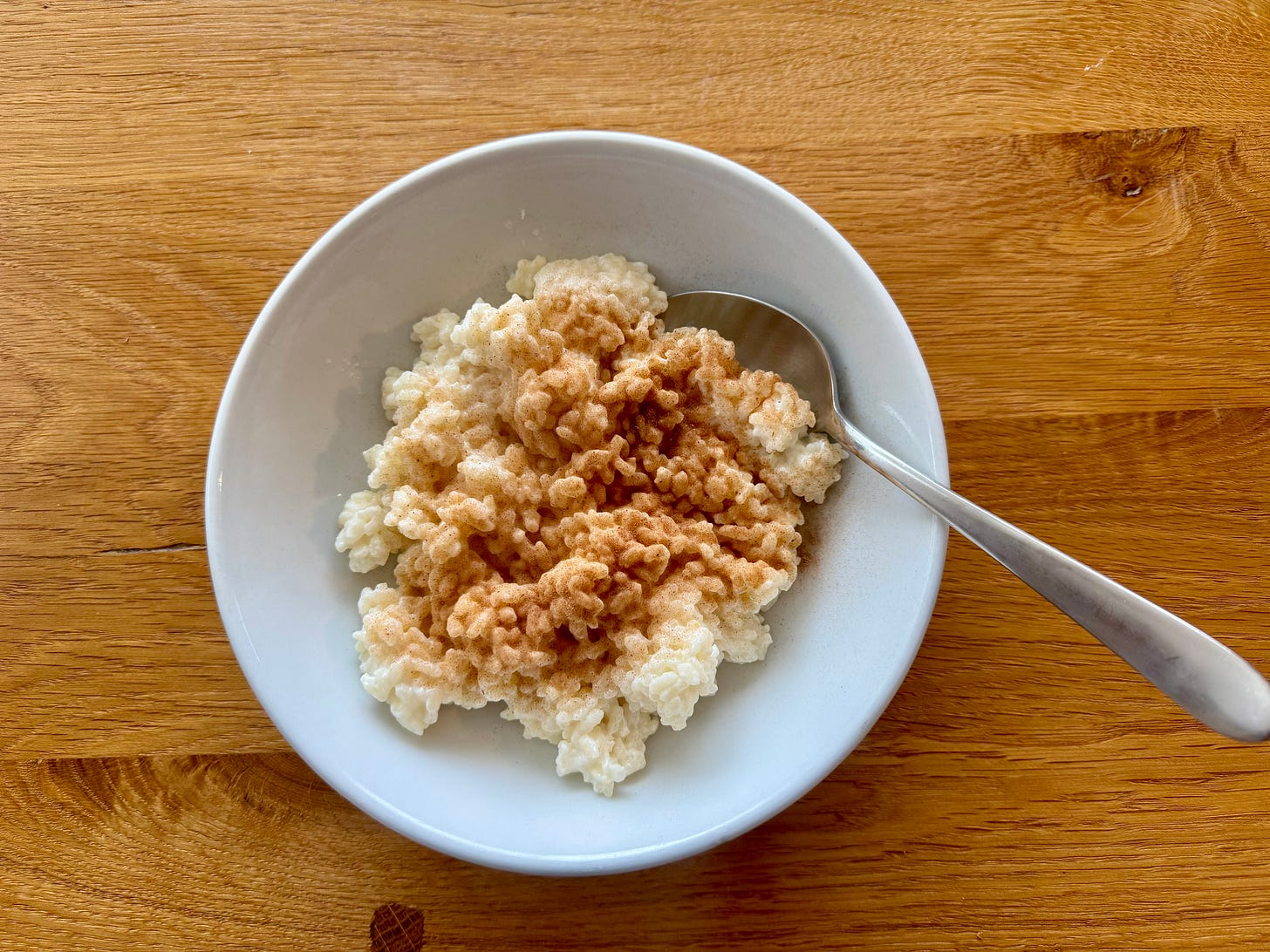 Whenever I spent time with my Oma as a kid, I’d ask her to make my favorite food, Milchreis. It’s a German version of rice pudding, made of arborio rice and whole milk, finished off with a sprinkle of cinnamon and sugar.